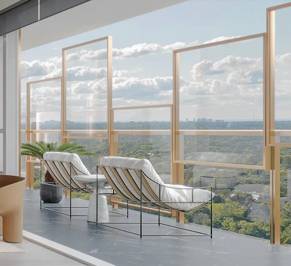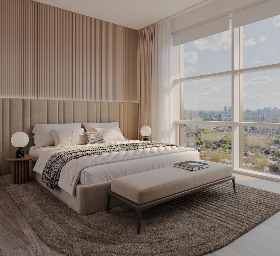 This modern residential community offers the latest energy-efficient technology, natural lighting, sleek Miele appliances, level 4 sound-proofing, a gym, and more, set in the lush East Don Valley.