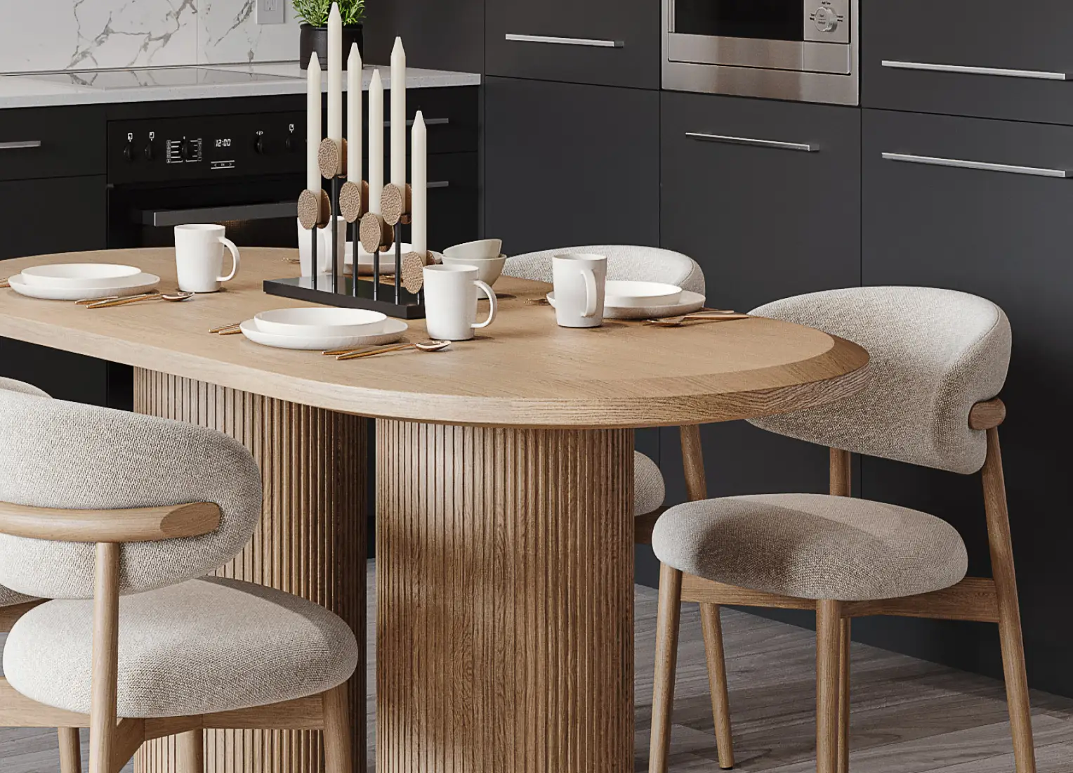 Each unit features stunning interiors inspired by modern Scandinavian design, with gorgeous natural wood finishes, top-of-the-line kitchen appliances, and smart storage solutions throughout.